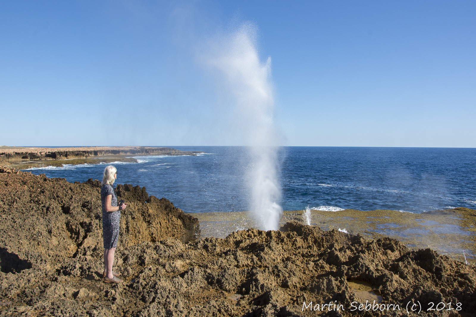 Long drive today - heading back south to get to Shark Bay - stopped overnight in Carnarvon. Just north of Carnarvon, visited the amazing blowholes, where sea gets pushed up through holes in the rocks causing huge plumes.